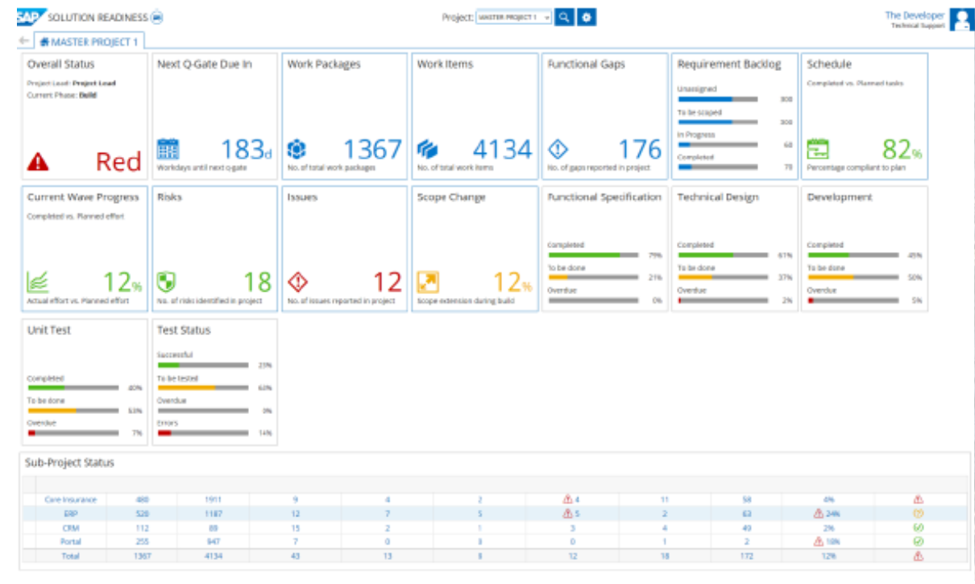 Again, Solution Manager is your friend here. Once again, let’s look at an example of the Solution Manager Readiness Dashboard – all your monitoring and progress in one place for all to see. There should be no secrets here. Remember, you are “one team” – business and IT, together