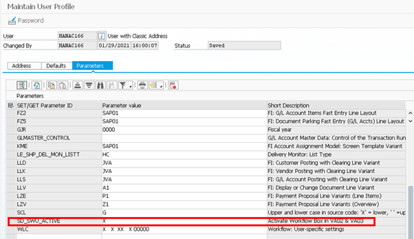 However, simply by maintaining the parameter SD_SWU_ACTIVE as “X” in your parameters against your username in transaction SU3, as below, the GOS button magically appears!