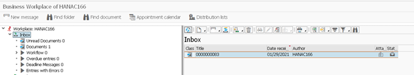 Once in the Business Workplace, the item sent will appear in the user’s inbox as below.