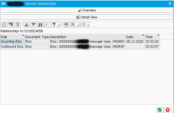 The Relationships option will show all IDOCs that are used in conjunction with the document (inbound and outbound).