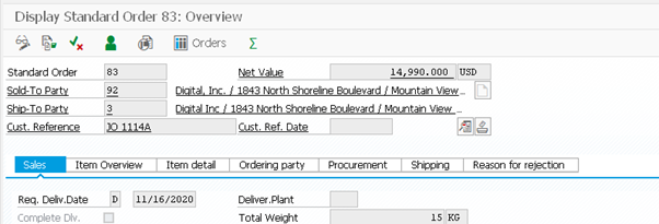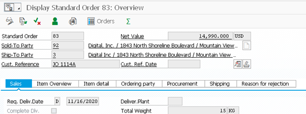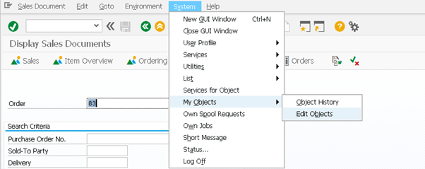 This will show you a list of your object. Double clicking on the object will take you into the display sales order transaction VA03.