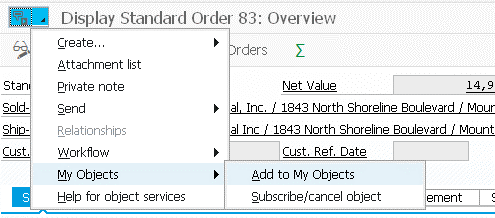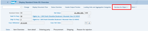 The Generic Object Services button in SAP Sales Orders