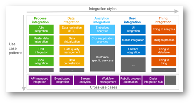 There are many use-cases common in every enterprise. Use-cases in each of the above-mentioned Integration Styles fall in to certain patterns. SAP has grouped and called them “Use-case Patterns”. Use cases are independent of the technology used to implement them. ISA-M templates are provided as a library of Use-case patterns for ready use. Certain use case patterns which cannot be mapped only to a single integration style are grouped under “cross-use cases pattern”. They are depicted in exhibit-5 below.
