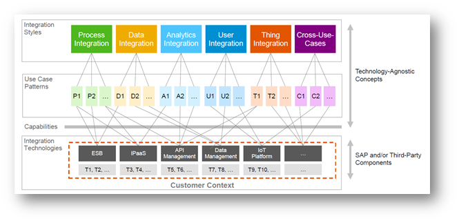 In a hybrid landscape, typical integration areas form an Integration Domain. For example, there are applications like Success factor, Fieldglass in cloud domain; S/4Hana or custom-built non-SAP applications in On Premise domain; mobile apps and desktop apps in user-centric domain; IoT based devices in real world objects. Hence the Integration between any two of these domains forms an “integration domain”. For example, User2Cloud or OnPremise2Cloud are examples of Integration domain. An architect would detail out an “as-is” and “to-be” scenarios based on this.
