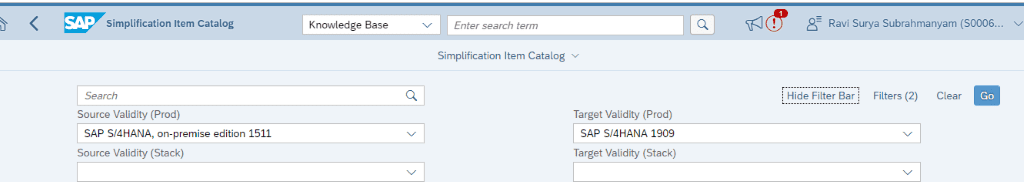 The Simplification Item Catalog helps to enable a good plan of your upgrade. This is a tool that allows Consultants to search or browse the complete collection of simplifications by each version and by application or functional area.