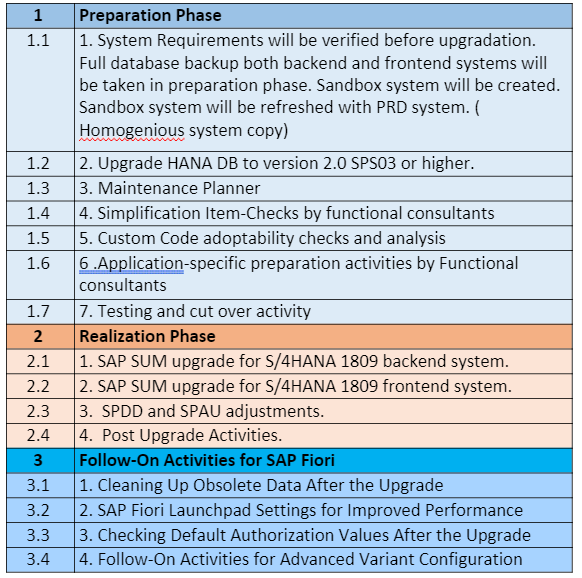 Time, cost & resources are required to do any upgrade. Experienced SAP S/4HANA upgrade Consultants or Architects will efficiently plan to perform a successful S/4HANA upgrade. The following steps are a usual guide to follow:
