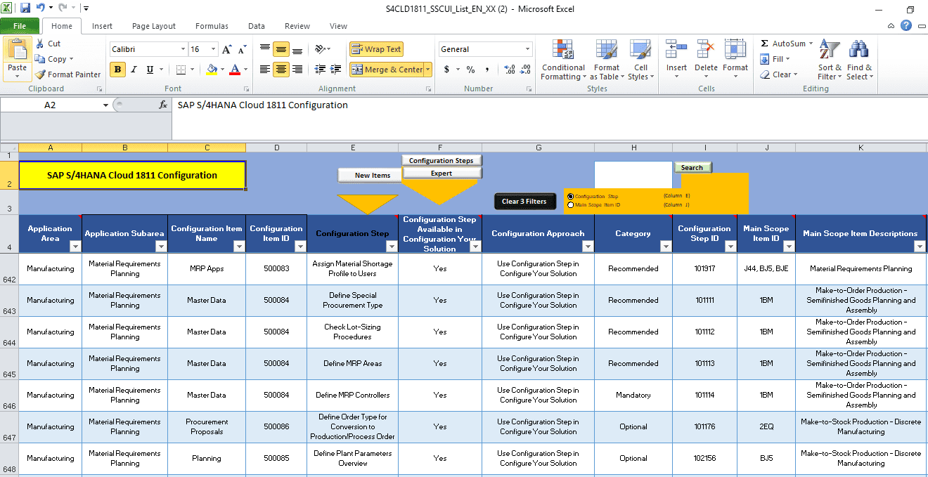 The backend of the S/4HANA allows customization of objects to meet specific business needs of a client. Some examples of configurable objects are company code, plant, sales organization, storage location, production order type or quality inspection type. SAP Best Practices Explorer provides a step-by-step and guided configuration roadmap (see Figure 1).